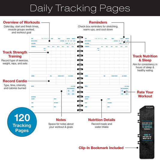 Workout Fitness Journal Nutrition Planners: Clip-In Bookmark, Sturdy Binding, Thick Pages & Laminated Protective Cover (Black & Gold)
