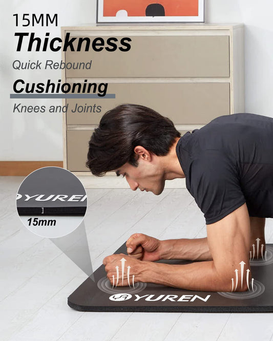 YUREN Large Yoga Mat Extra Wide Workout Mat for Home, 76"X35"X15Mm Thick Yoga Mat for Men, High Density Gym Mat with Carrying Strap (Black)